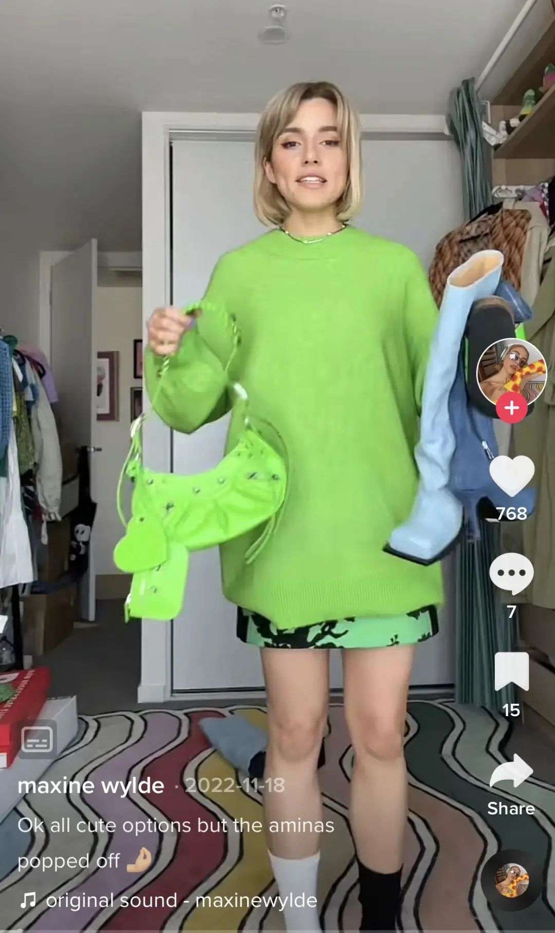 她的 TikTok 展示了她对时尚百分百的热情,“style with me”和购物视频展示了她最喜欢的时尚单品。