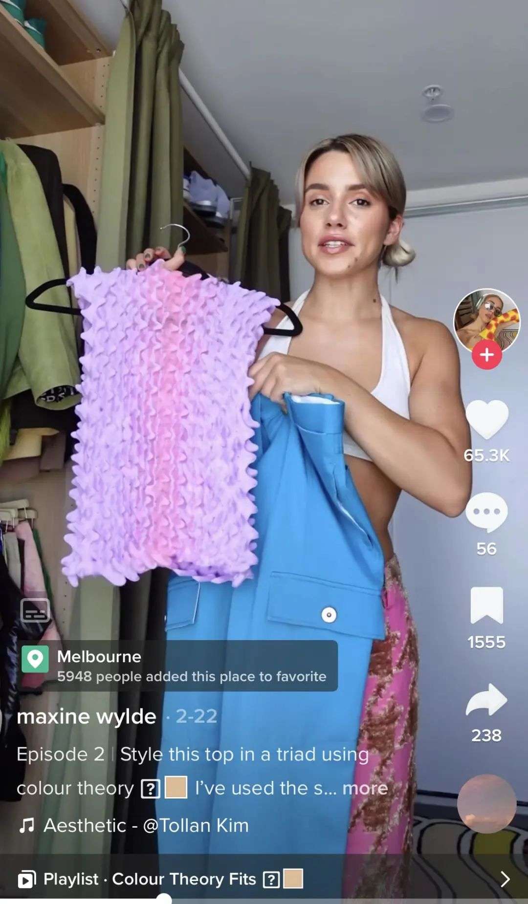 她与典型的时尚视频博主的不同之处在于她使用了“色轮理论”——当她将一套又一套迷人的服装组合在一起时,产生奇妙的搭配颜色,效果很不错。