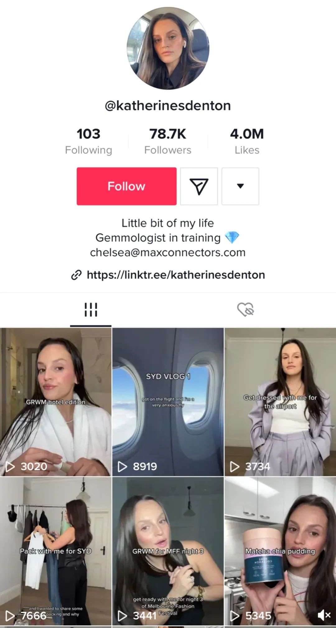 她的 TikTok里也是视频博客风格,其中涵盖了从日常步行到悉尼旅行的所有内容。