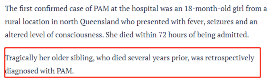 另有一位18个月大的澳洲婴儿死于食脑虫感染,