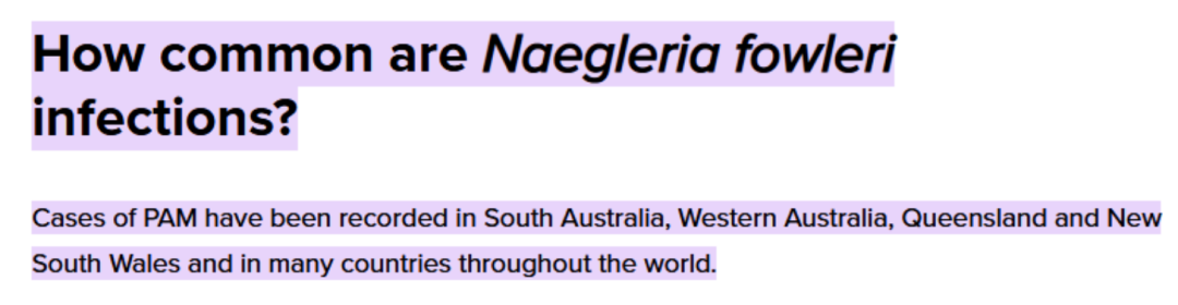在澳洲,至少有4个州曾出现食脑虫病例,