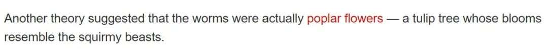 尽管大篇幅渲染了“虫雨灾难”,但《纽约邮报》还是在整篇文章的小角落,用短短的一句话表示:另一种理论认为,这些蠕虫实际上是白杨花。
