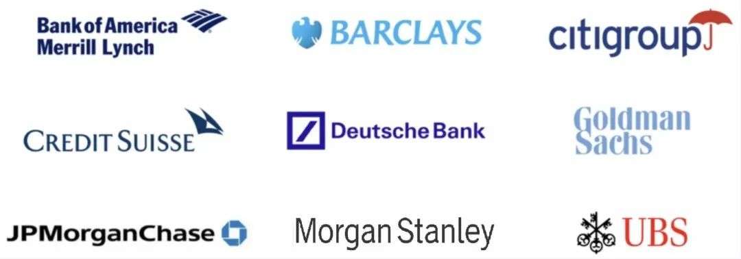 与之齐名的,是高盛、摩根史坦利、摩根大通、瑞士银行、德意志银行、巴克莱资本、美银美林以及花旗银行。