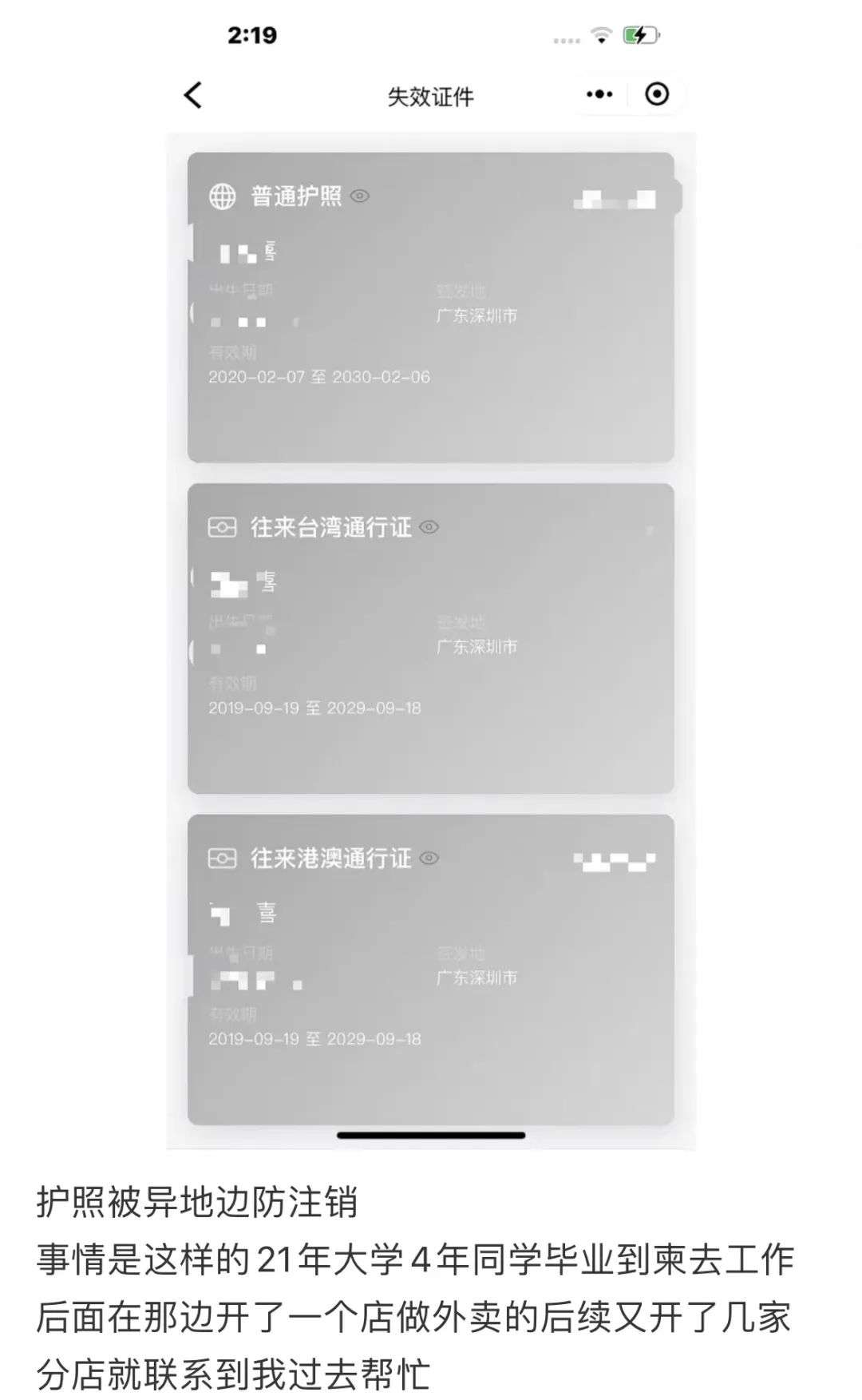 随后爆料人又再次发帖,表示不只自己的父亲被取消护照,他的一个朋友也遇到了类似的情况。
