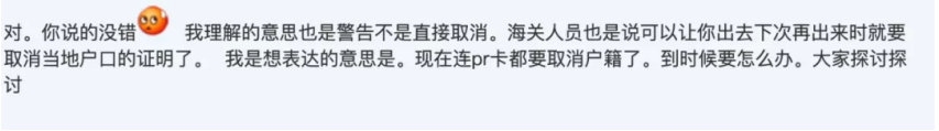 “海关人员也是说可以让你出去,下次再出来时就要取消当地户口证明了。”还有人表示,这可能是为了进一步落实海外长期定居中国公民户籍取消政策。但华人们更担心的是,现在仅仅获得PR就必须注销户口了吗?除了自己父亲以外,自己的一个朋友也遇到了类似情况,办理签证、购买机票之前一定要再三确认自己的护照状态,查看护照状态很简单,通过微信或支付宝小程序就可以完成。