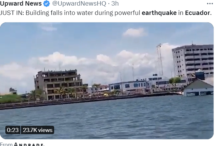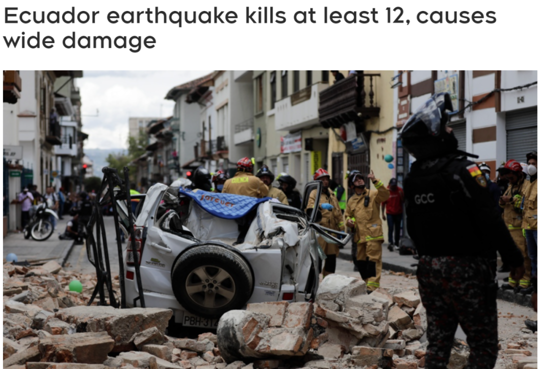 据报道,地震主要发生在厄瓜多尔第二大城市瓜亚基尔以南约80 公里处的太平洋海岸附近。