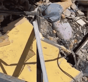 最让人无法直视的是,建筑废墟砸中街道上一辆汽车,当碎石被扒开后,只见司机已被当场压死……