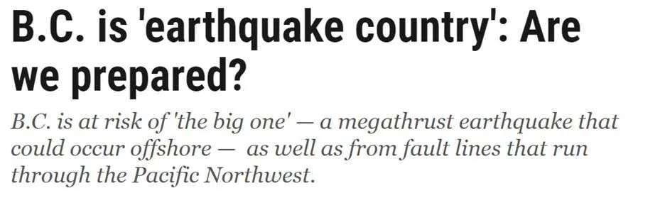 BC省,尤其是温哥华岛更是地震多发地带,就在上周,BC海岸至少发生了4次地震,