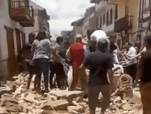 地震已经造成至少12人死亡,大量建筑倒塌,有市民当街被活活砸死,大地狂颤引发民众惊慌,有视频记录了地震发生当时超市民众疯狂外逃的影像。
