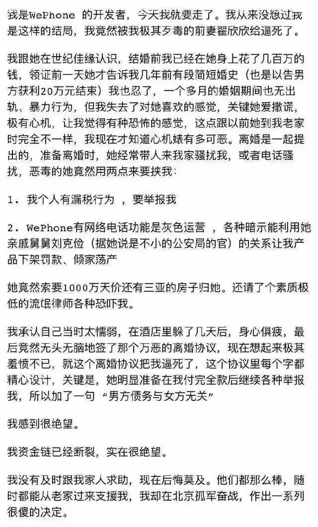 前妻翟某还以其产品功能处于灰色地带、有偷漏税行为等作为要挟,