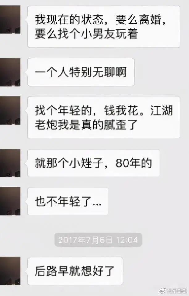 “我现在的状态,要么离婚,要么找个小男友玩着……就那个小挫子,80年的,也不年轻了。”