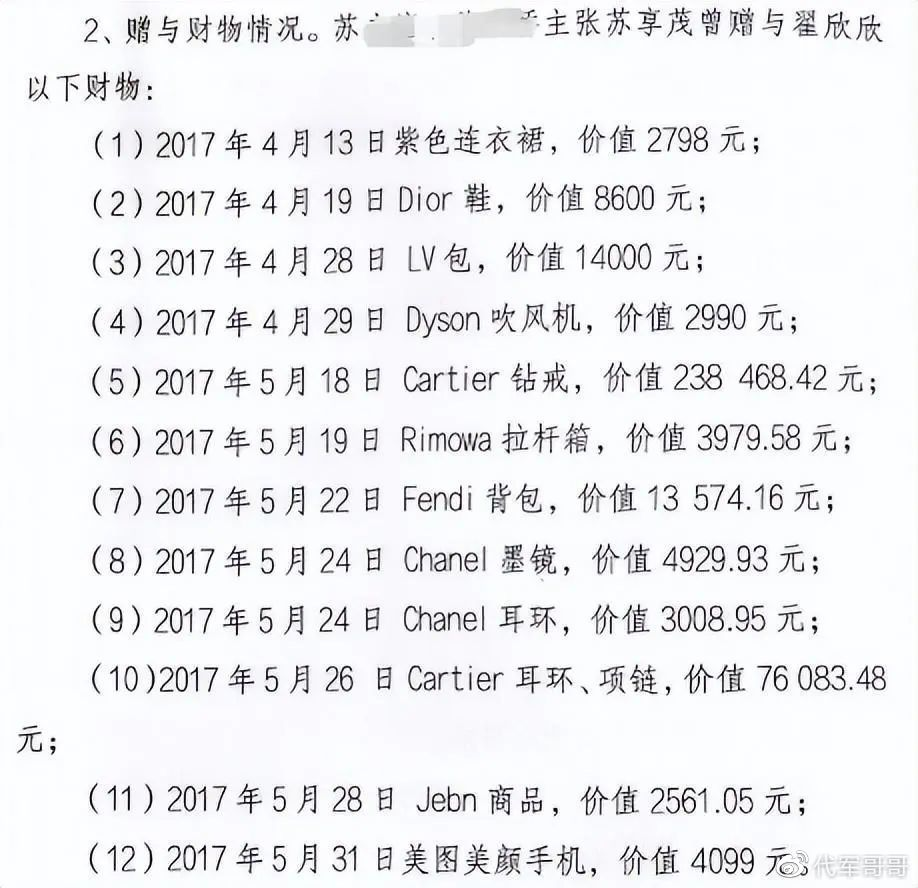 如今,法院判决翟某归还苏某所有赠予,并支付其家属现金。
