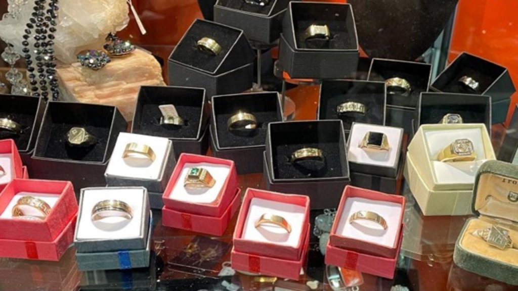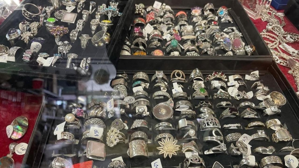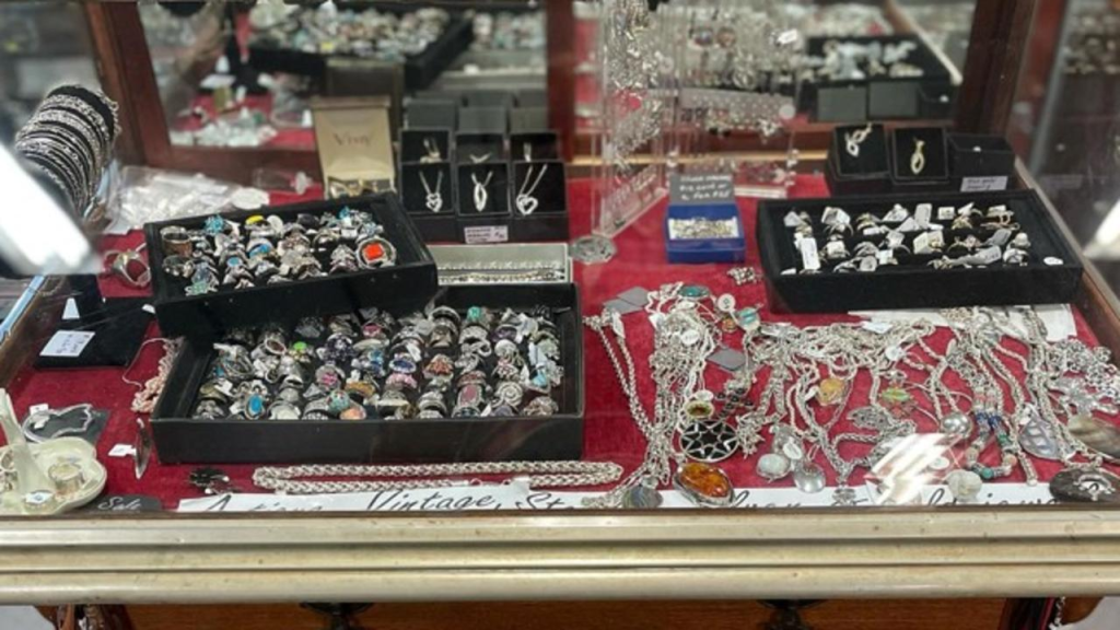 歹徒一闯入店内,就砸碎了玻璃柜,偷走了220枚金银戒指、数个吊坠、手镯、耳环和胸针。这些珠宝既有当代的,也有古董,很容易辨认。