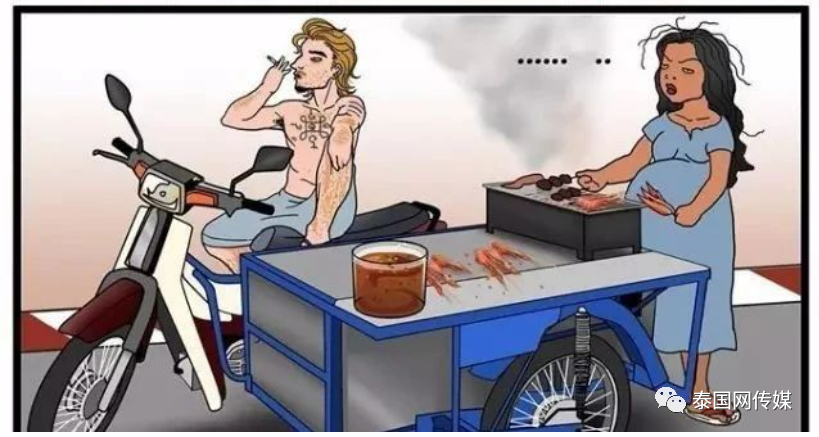 另一方面,有泰国网友指出,其实第③个版本还有另外的解读——漫画中的金毛,是结婚后暴露本性的“洋老公”,不做家务、不赚钱,反而好吃懒做等着泰国女人养活自己。