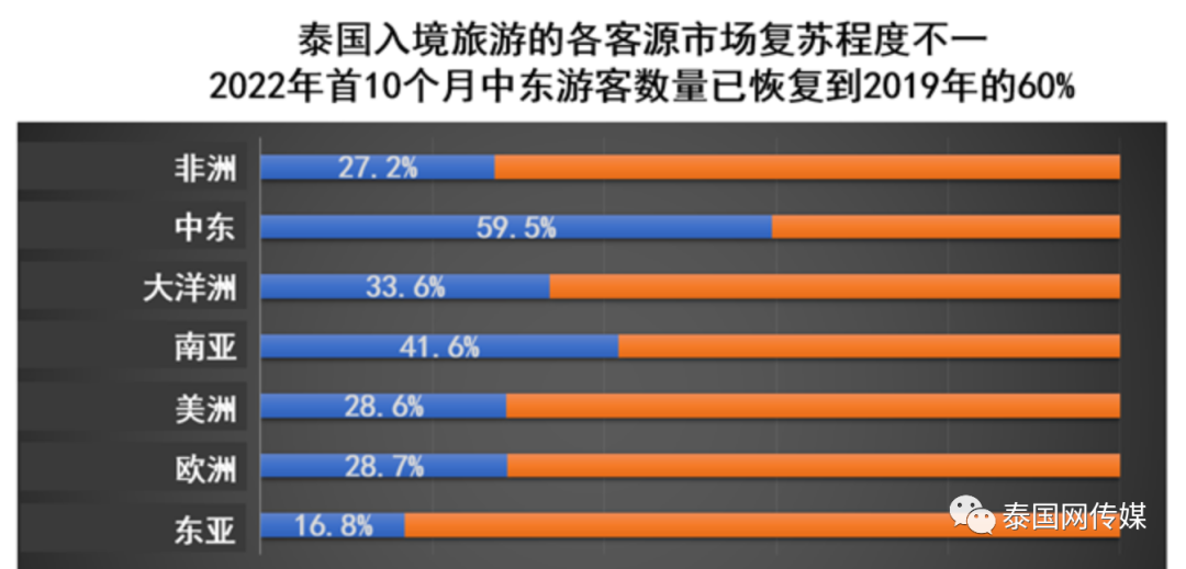 按这个比例,基本上是1:1:1。中国游客自成一派,欧美自成一派,东盟、印度、日韩、俄罗斯、中东同样自成一派。而无论疫情前后,500多万欧美人冲进泰国,让当地人有大量机会接触交流。