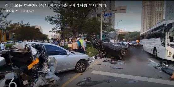 ● 去年,在韩国某闹市区,一名男子在吸食毒品后引发车祸