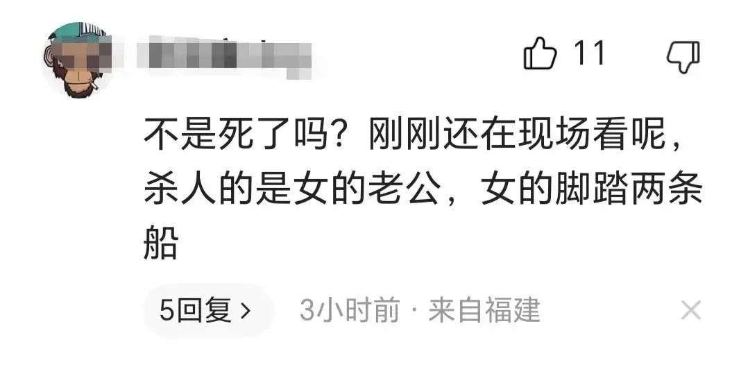 一位当地网友称,凶手和长发女子是夫妻关系,女方脚踏两只船: