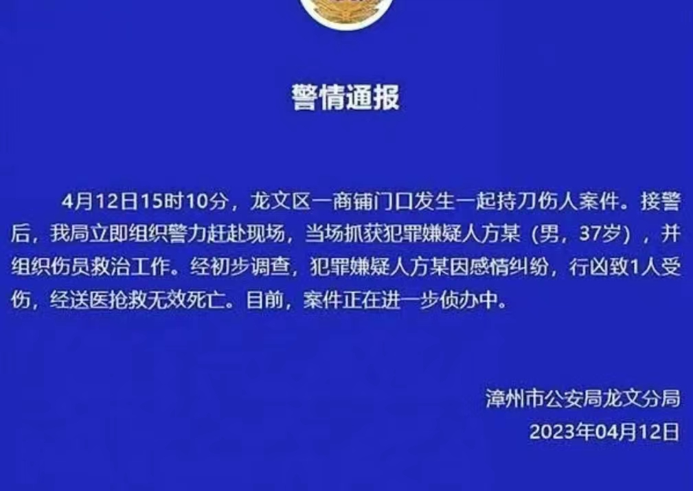 犯罪嫌疑人方某因感情纠纷,行凶致1人受伤,经送医抢救无效死亡!