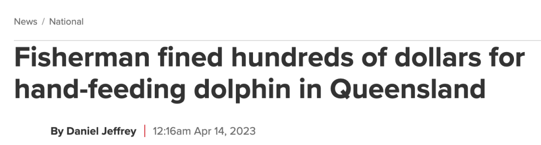 近来,昆州一名男子就是这样被罚款了。他在布里斯班以北不到三小时车程的锡罐湾(Tin Can Bay)喂食一只野生海豚,他放上网的视频被执法人员发现,昆州公园和野生动物局(Queensland Parks and Wildlife)对此展开了调查。