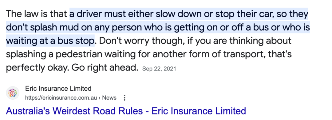 在新南威尔士州,公交车司机将泥浆溅到公交车乘客身上是违法的。如有必要,司机必须减速或停车,以免将泥浆溅到公共汽车上的任何人或或在公共汽车站等候的乘客。否则会面临罚款约2200澳元。