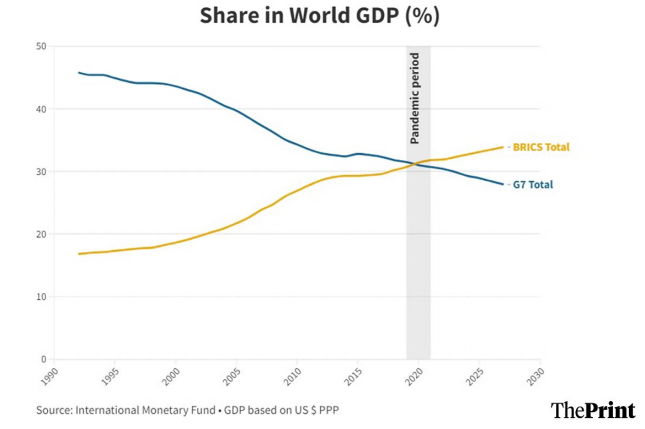 尽管金砖国家逐步去美元化可能不会像俄罗斯政治人物所预想的那样对美元产生毁灭性后果,但金砖经济体仍然是全球经济中的一股强大力量。随着金砖国家对全球GDP的贡献率上升至31.5%,超过西方主导的竞争对手G7的30%,东方主导的集团正在意识到其在全球经济舞台上的力量并积极寻求扩大其影响力。