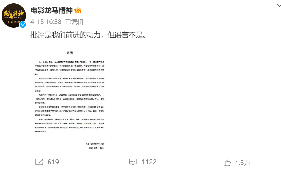 事情源起电影《龙马精神》,上映几天,话题不断。