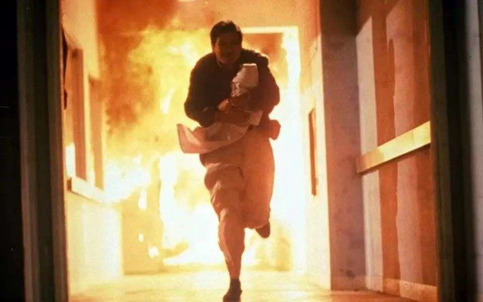 电影《辣手神探》拍摄时,周润发有一场大火逃生的戏。