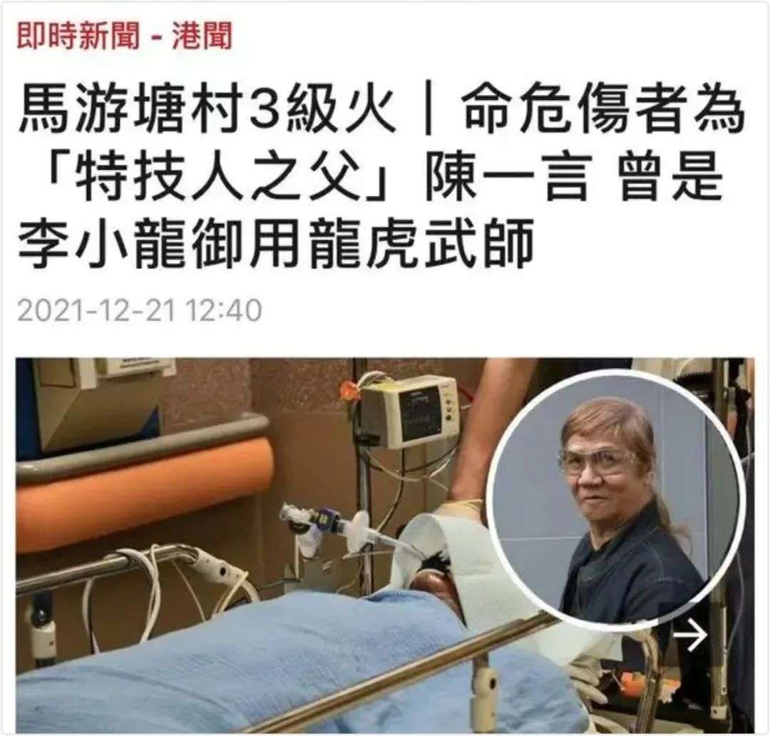 曾给李小龙和成龙都当过替身的香港武师陈一言,就曾被港媒报道晚年住在城郊的铁皮屋里,还被邻居纵火烧伤。