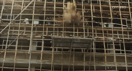 在成龙主演的电影《龙的心》中,导演洪金宝设计了八名建筑工人从高楼同时坠地的高难度戏份。