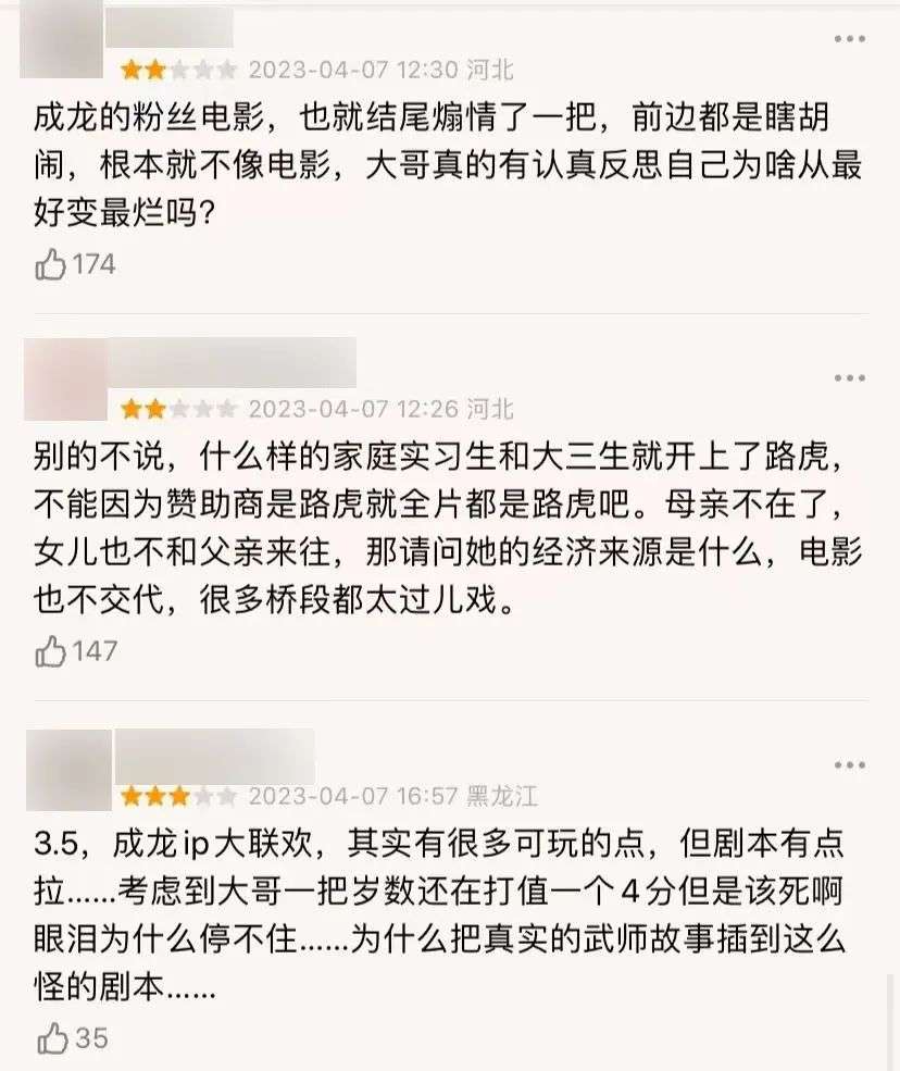 而后路演宣传,更是有观众因为观影体验不佳,当场要求成龙退票。
