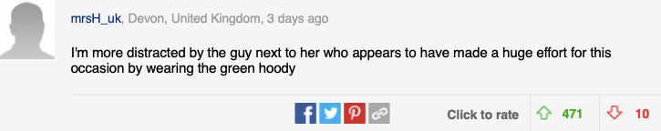 据报道,女宾在自己社交媒体里就经常发布类似风格的衣服搭配,看起来习惯了走性感路线。她这次的服装曾被泰国小姐瓦拉哈(Ingfah Waraha)在节目上穿过,但对方当时是在走秀,有表演目的用途。但在婚礼上选择穿这件衣服,很多网友看完后表示不理解。“婚礼不是夜店酒吧,穿着得体是对自己及他人的尊重。”不过也有网友认为,看照片里新娘貌似对女友的着装没有异议,加上女孩平常的穿衣风格也是如此,可能只是广大网友瞎操心一场…在外国论坛reddit上的其中一个板块,网友也经常讨论婚礼着装问题。之前一张女宾和新人合拍的照片也引起类似争吵。照片里,在户外的大草坪上,新郎新娘及亲密友人来了张大合照,气氛融洽。然而,网友却眼尖发现:新娘旁边穿着蓝色低胸裙的女士,是不是露胸露得太夸张了?!“胸大是她的错吗?不是。穿着如此低胸的衣服去参加婚礼,让整个胸部都快要掉出来是她的错吗?没错,是她的错。”“如果你有大胸,那么你穿着低胸装的唯一原因就是你希望它们被人注意到。很容易就可以穿着得体啊,但如果要让它们被嫌弃那也是自找的。”“自恋狂想要从新娘那里夺走注意力,她很快就会变成一个没朋友小姐了!”不过,也有网友注意到:照片里一位男宾貌似直接穿的相当休闲的连帽衫出席的婚礼?!“我倒是更在意新郎新娘身边那个穿着绿色连帽衫的家伙,他貌似为这场婚礼的着装做了相当大的努力啊(bushi)。”有人判定,这场婚礼的着装规范应该本来就十分宽松,看现场的氛围也是以欢乐为主,可以不必对露胸女宾过于上纲上线…其实,参加婚礼的注意事项看来还是挺多的,颜色款式都有讲究,这可能就是所谓的隐藏文化了吧…