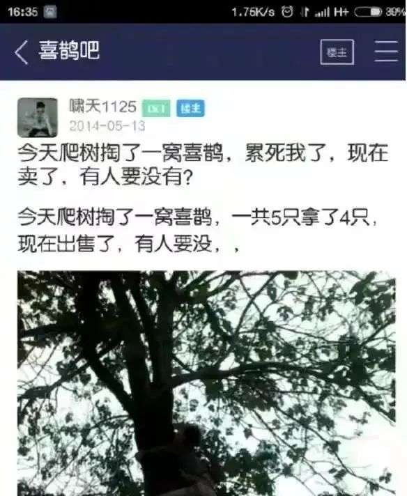 几乎不费吹灰之力就偷了一窝鸟,又顺利卖出10只。尝到了甜头的闫啸天,此后不时在山里转转,往树上瞅瞅,或者侧耳倾听,看哪里有鸟窝。