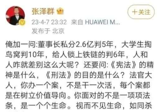 董事长私分2.6亿判5年,大学生掏鸟窝判10年,给人锁上铁链的判6年,人和人咋就差别这么大呢?”