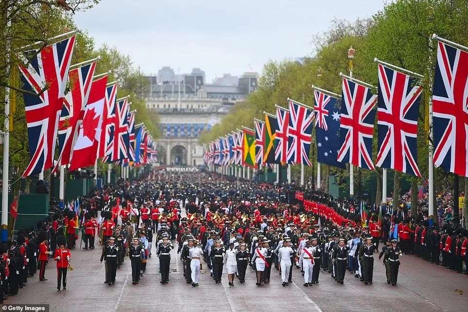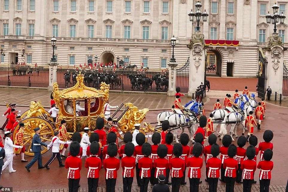 加冕仪式结束后,游行队伍护送查尔斯和卡米拉将乘马车原路返回白金汉宫,这被称为“加冕游行”(The Coronation Procession)。