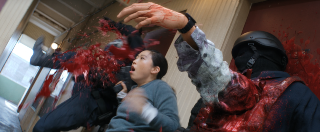 当雷恩菲尔德在酒吧,用平底锅切断黑帮分子的双手,血浆飞溅;或是他在自家楼梯口,将双臂作为武器,直插对手心脏,这些血浆的夸张效果,丝毫不亚于昆汀的电影。