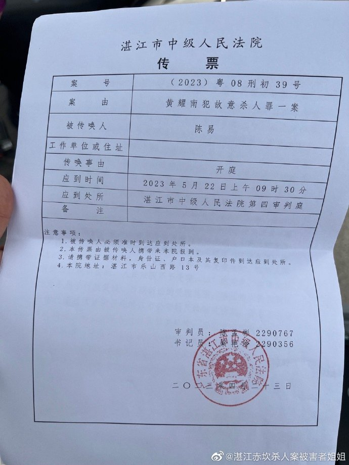 中国新闻周刊了解到,5月22日,黄某南犯故意杀人一案将在湛江市中级人民法院开庭审理。