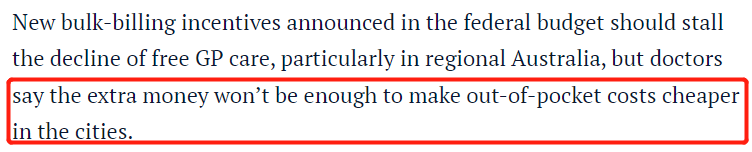 虽说上周Albanese总理的联邦预算称,在未来5年政府将拨款35亿澳元,把bulk-billing增至目前的3倍,