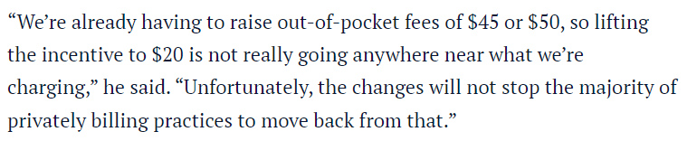 他说:“政府的激励措施并不能阻止大多数私人诊所的计费做法。