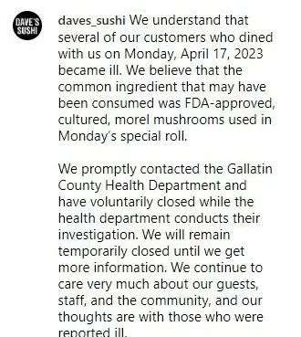 所以非常有可能是因为Dave's Sushi对羊肚菌烹饪或者储存不当,才导致了此次食物中毒事件。不过却有好事的媒体直接将“来自中国的羊肚菌被认为是造成蒙大拿州食物中毒的罪魁祸首”作为标题。