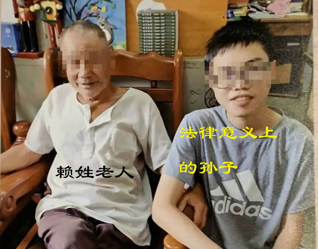图中右边的年轻人,为老者法律意义上的孙子,今年18岁。
