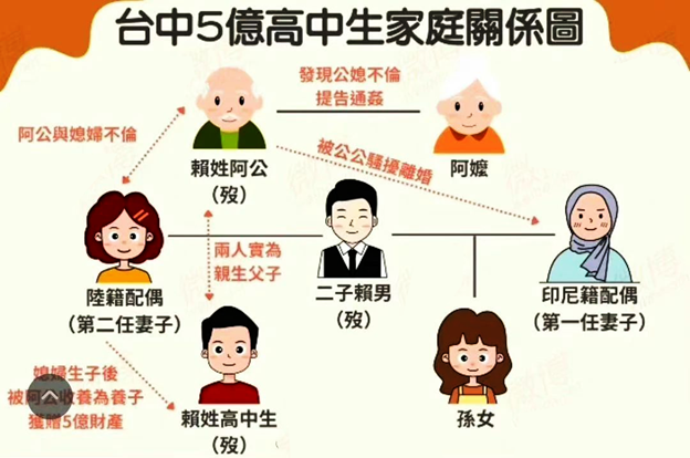 媒体们挖出,这位台媒口中的“18岁5亿男”根本不是赖姓老者的孙子,而是他的亲儿子!