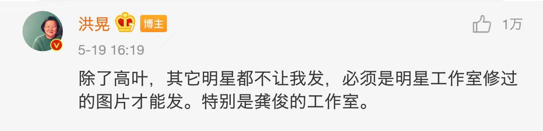 洪晃解释说:除了高叶,别的明星都不让随便发,特别是龚俊工作室。
