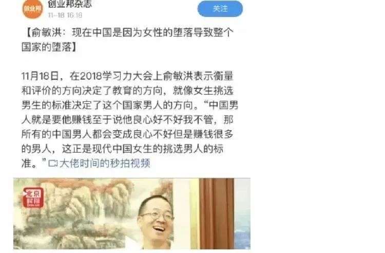 他说,现在是因为中国女性的堕落,导致了这个国家的堕落。