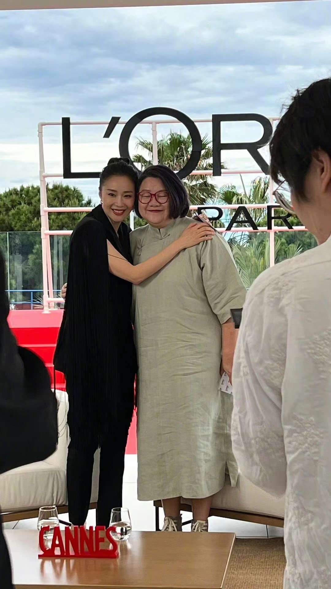 起因是她作为主持人在戛纳采访了一些明星,然后发了合照。