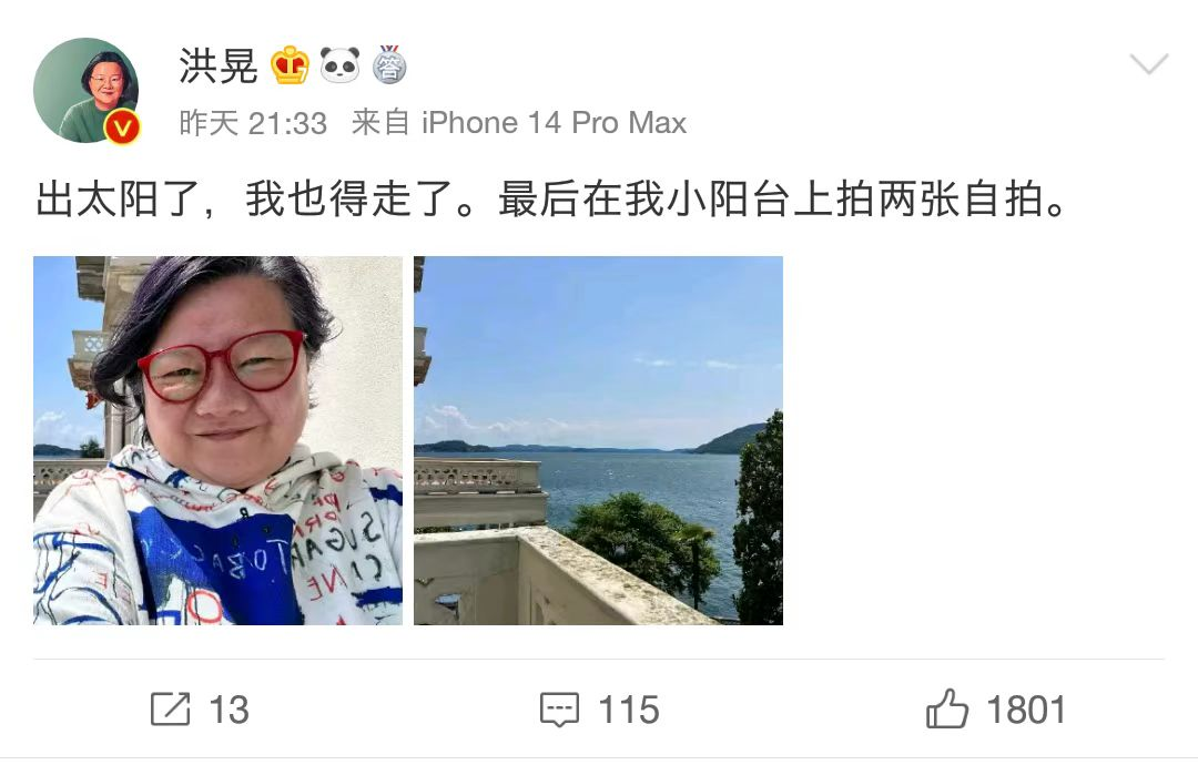 这肯定算“丑照”了,洪晃就道歉并把照片都删除了。