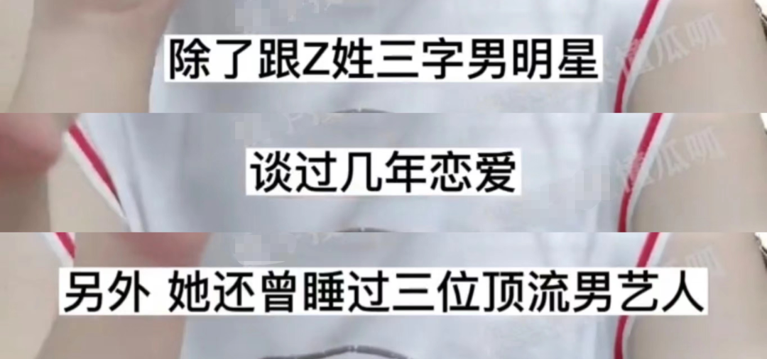 此前,她曾和Z姓的三字男明星谈过几年恋爱,但除此以外她还和三位顶流男艺人发生过关系。