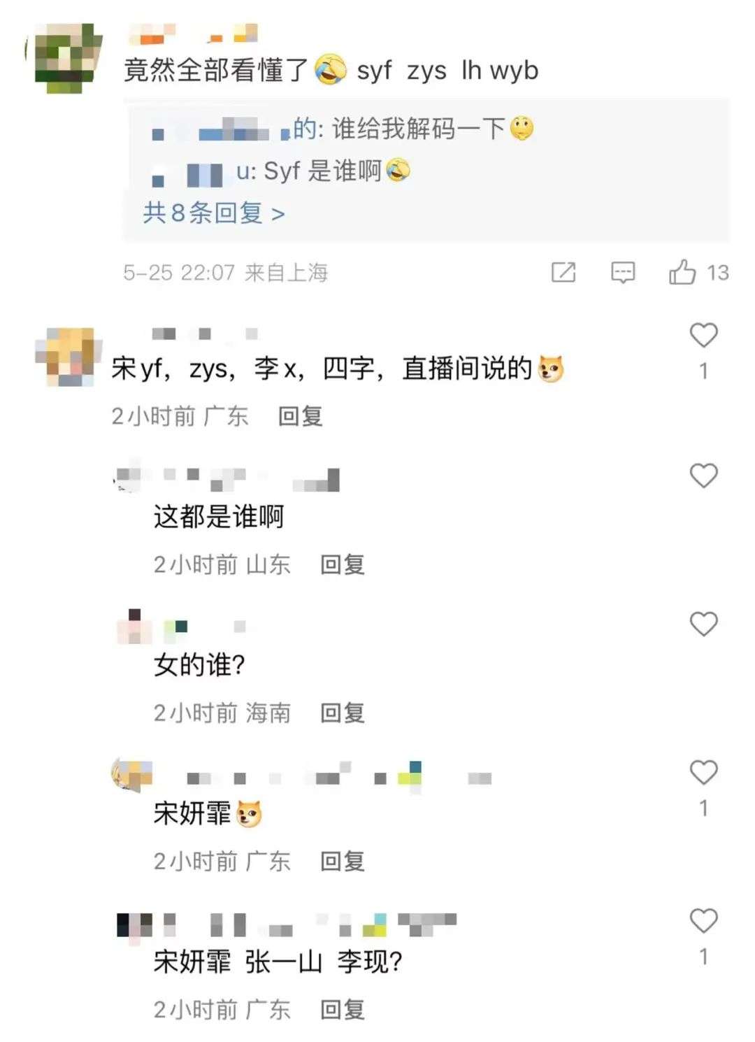 除了syf之外,网友们还猜测另外三个男顶流可能是lh、lx和wyb。