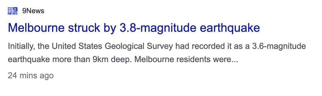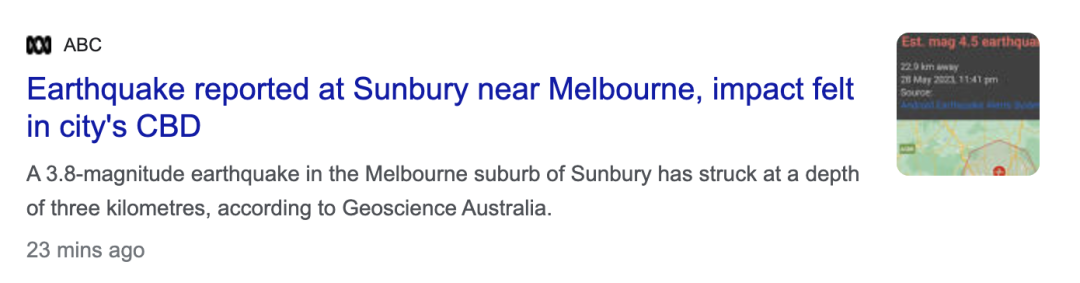 地震地点在墨尔本,但是从悉尼到堪培拉都能感受到震感。