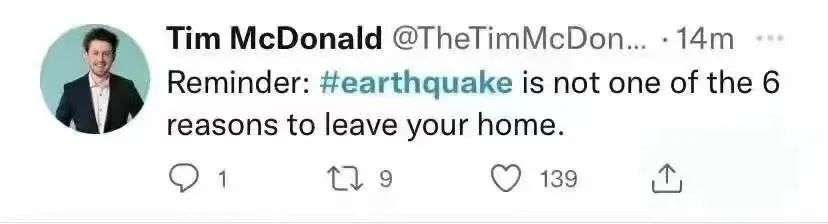这个推特网友说:在目前的封城令居然没有限制到地震吗?