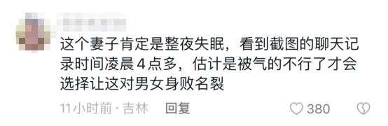 “这个妻子肯定是整夜失眠……估计是被气得不行了才会选择让这对男女身败名裂。”
